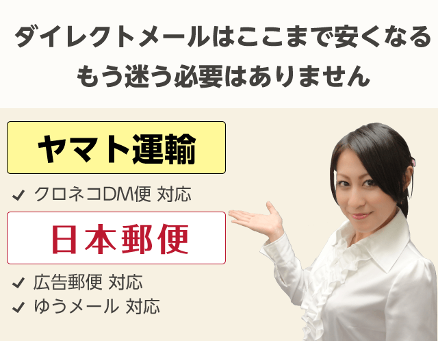 弊社をご利用いただいたほぼ全てのお客様が、DM発送に関する経費の削減及び納期の短縮を実感しています。御社の戦略に最適な発送方法をご用意できる弊社をぜひご利用ください。